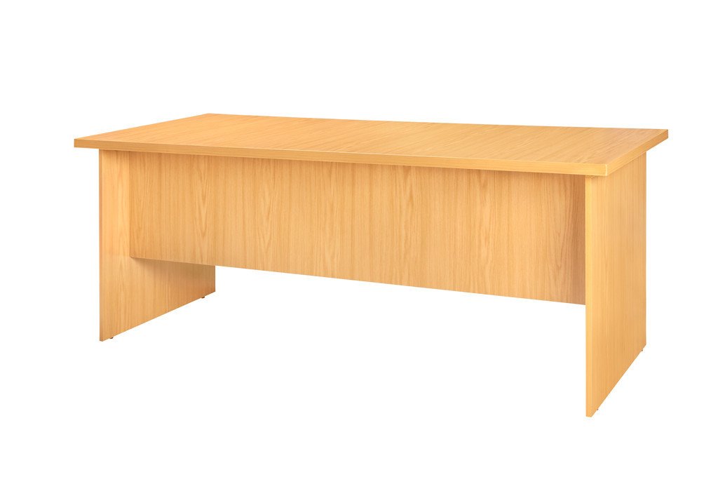 - Melamine Desk Shell with 16mm panel legs and modesty panel- 32mm built up top- 4 glides under panel legs for stability and ease of shifting- matching edging edging for oak and mahogany, black edging for cherry - size 1800x750