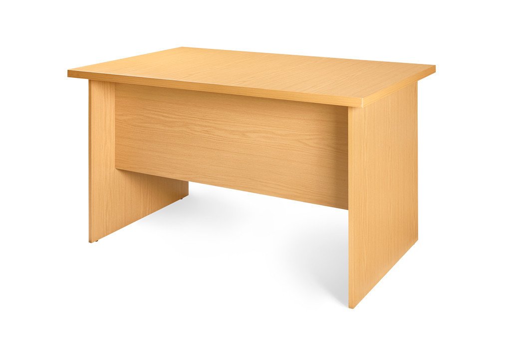 '- Melamine Desk Shell with 16mm panel legs and modesty panel- 32mm built up top- 4 glides under panel legs for stability and ease of shifting- matching edging edging for oak and mahogany, black edging for cherry