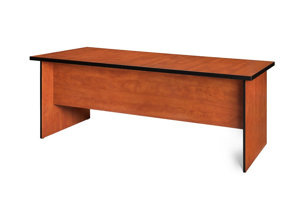 - Melamine Desk Shell with 16mm panel legs and modesty panel- 32mm built up top- 4 glides under panel legs for stability and ease of shifting- matching edging edging for oak and mahogany, black edging for cherry - size 1800x750