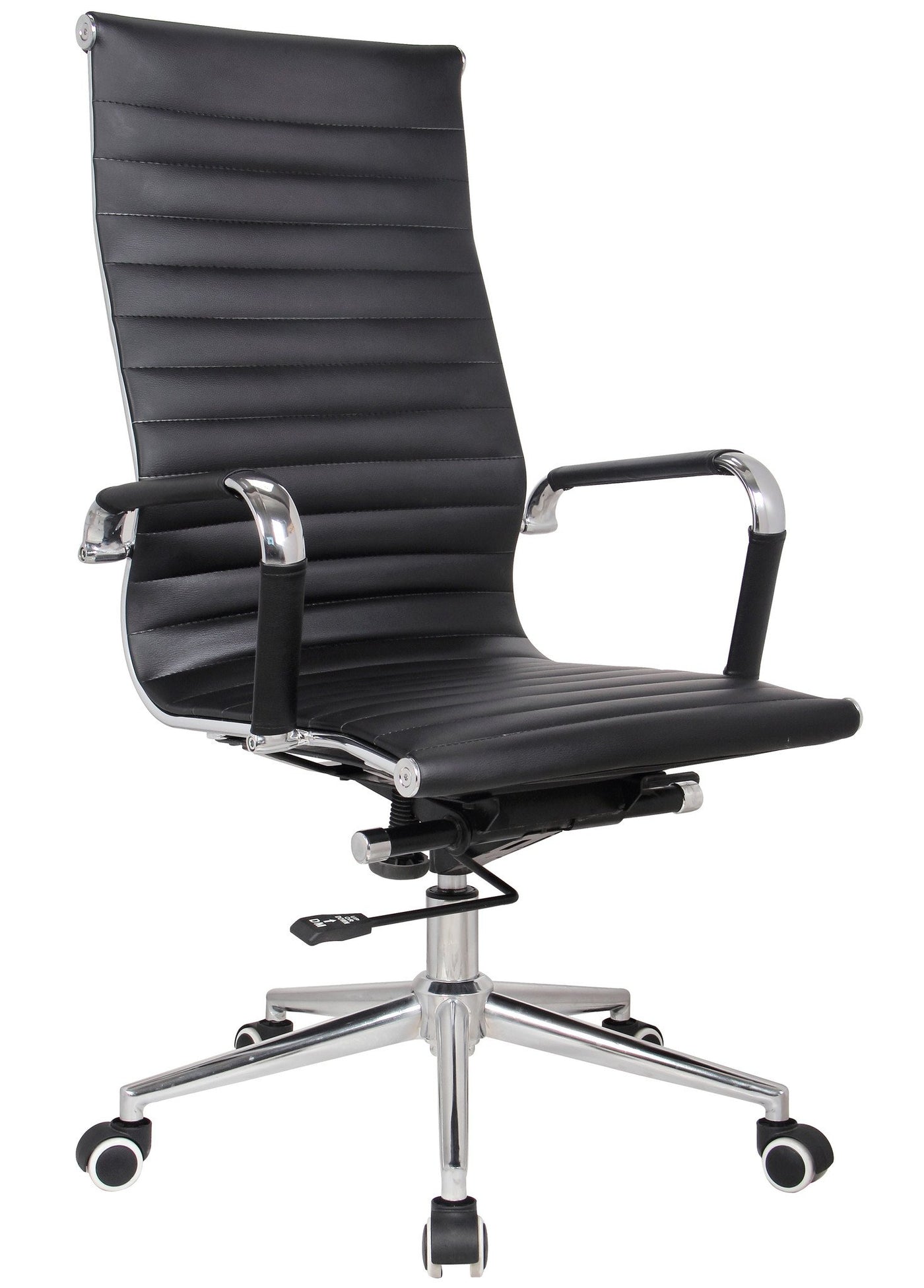 Add a modern style touch with our classic ribbed black vegan leather high back office chair with improved sturdy structure. Best high quality vegan leather with fire retardant foam, CA117. This desk chair is perfect for any home office, conference rooms, boardrooms and executive offices. The leather upholstery ensures durable comfort allowing fo...