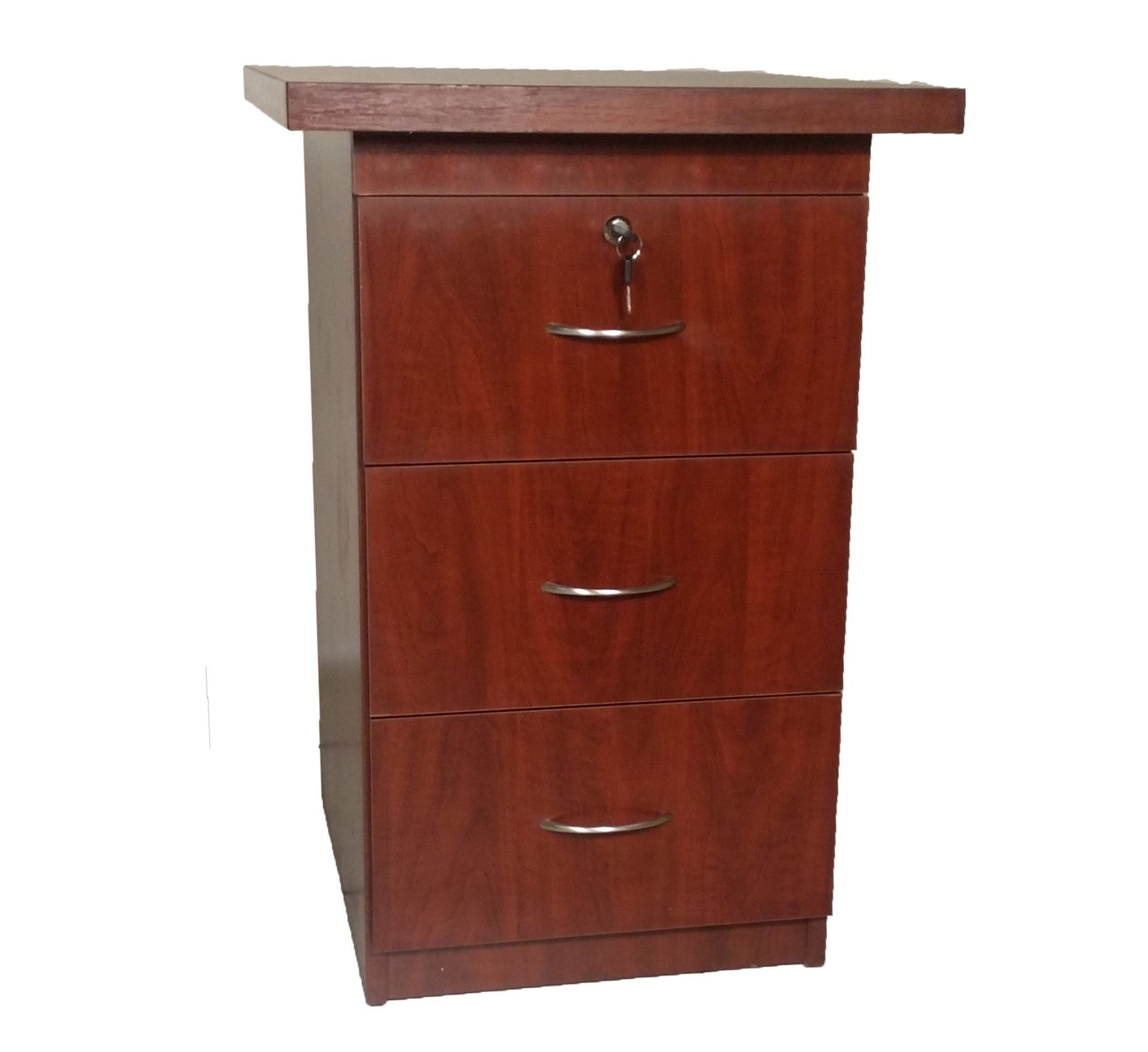 - Melamine Pedestal with 3 drawers and top lock - Size 500x410, 16mm top - 4 castors at the bottom for ease of shifting - matching edging edging for oak and mahogany, black edging for cherry