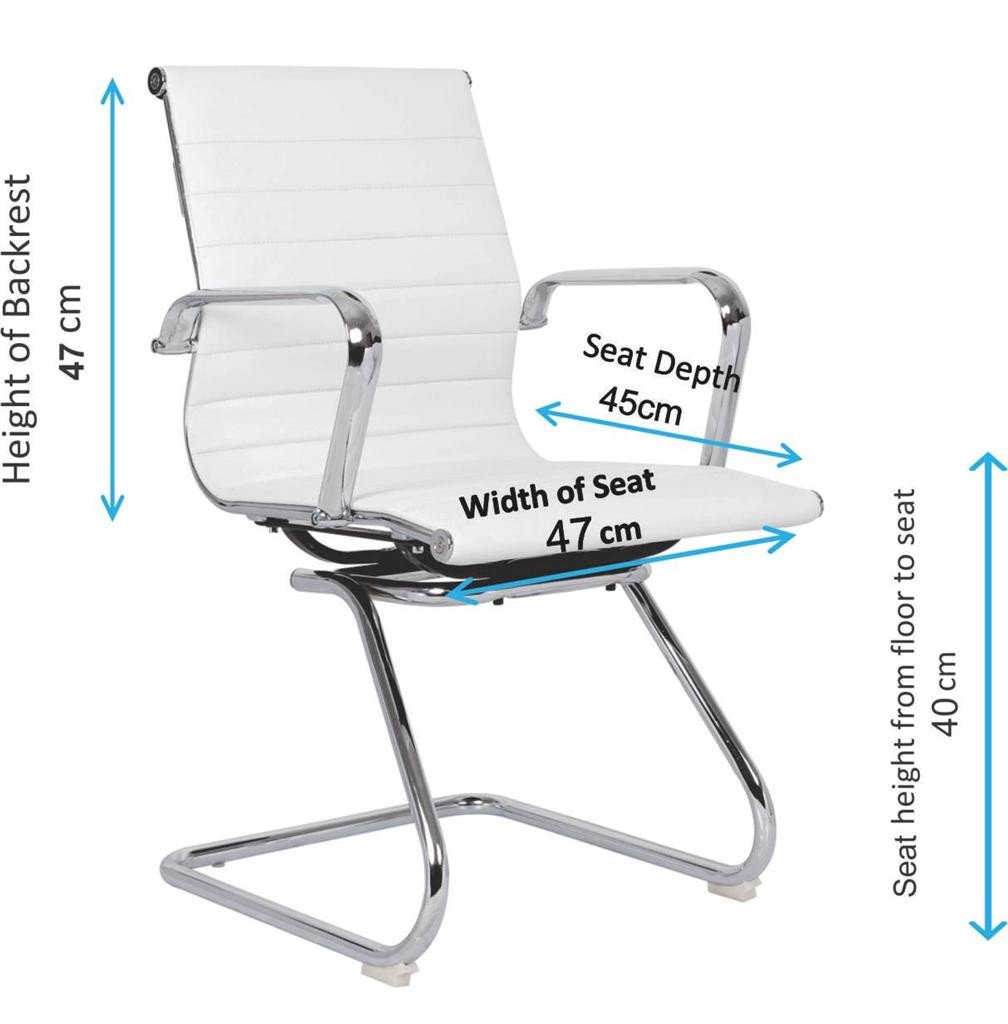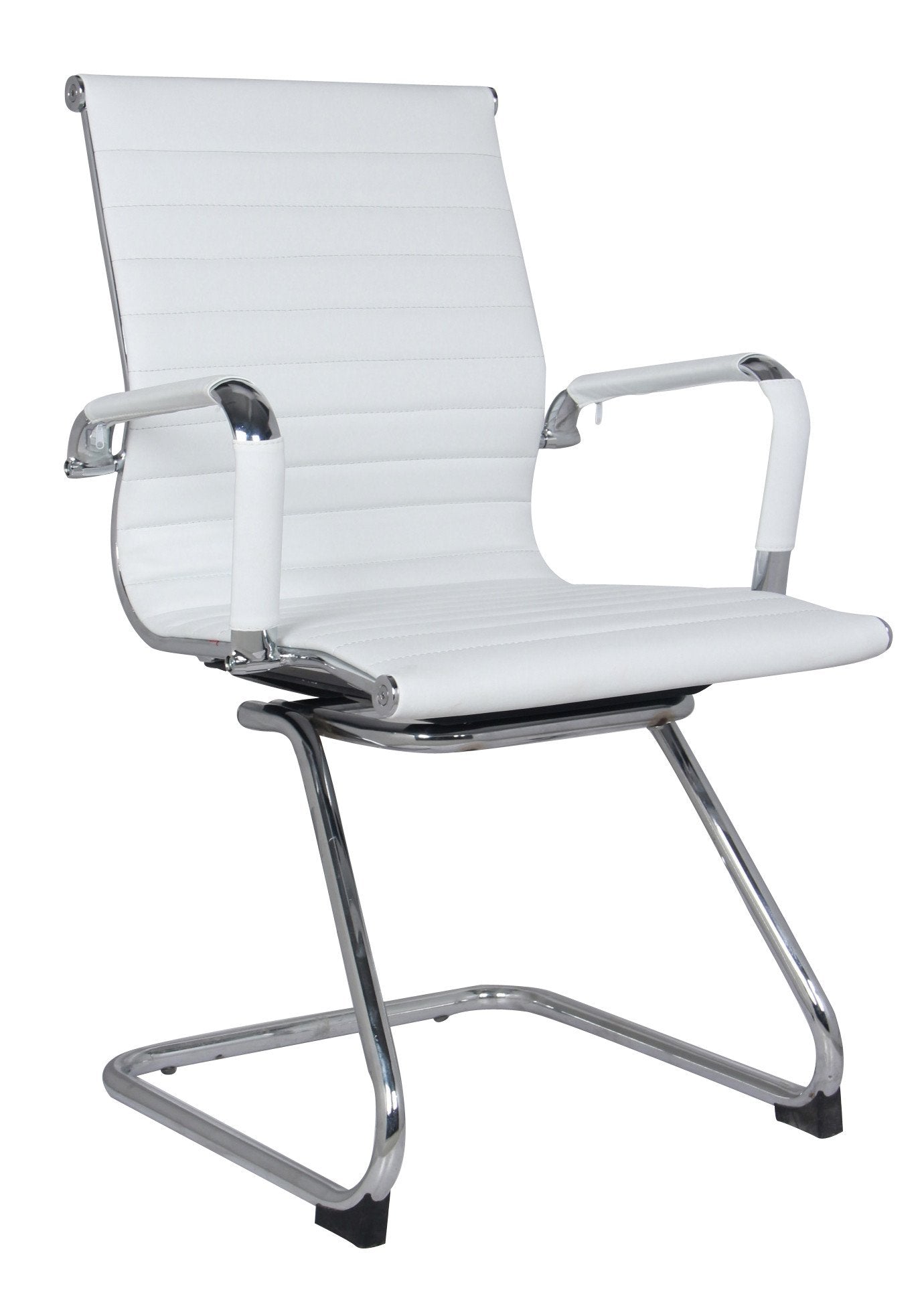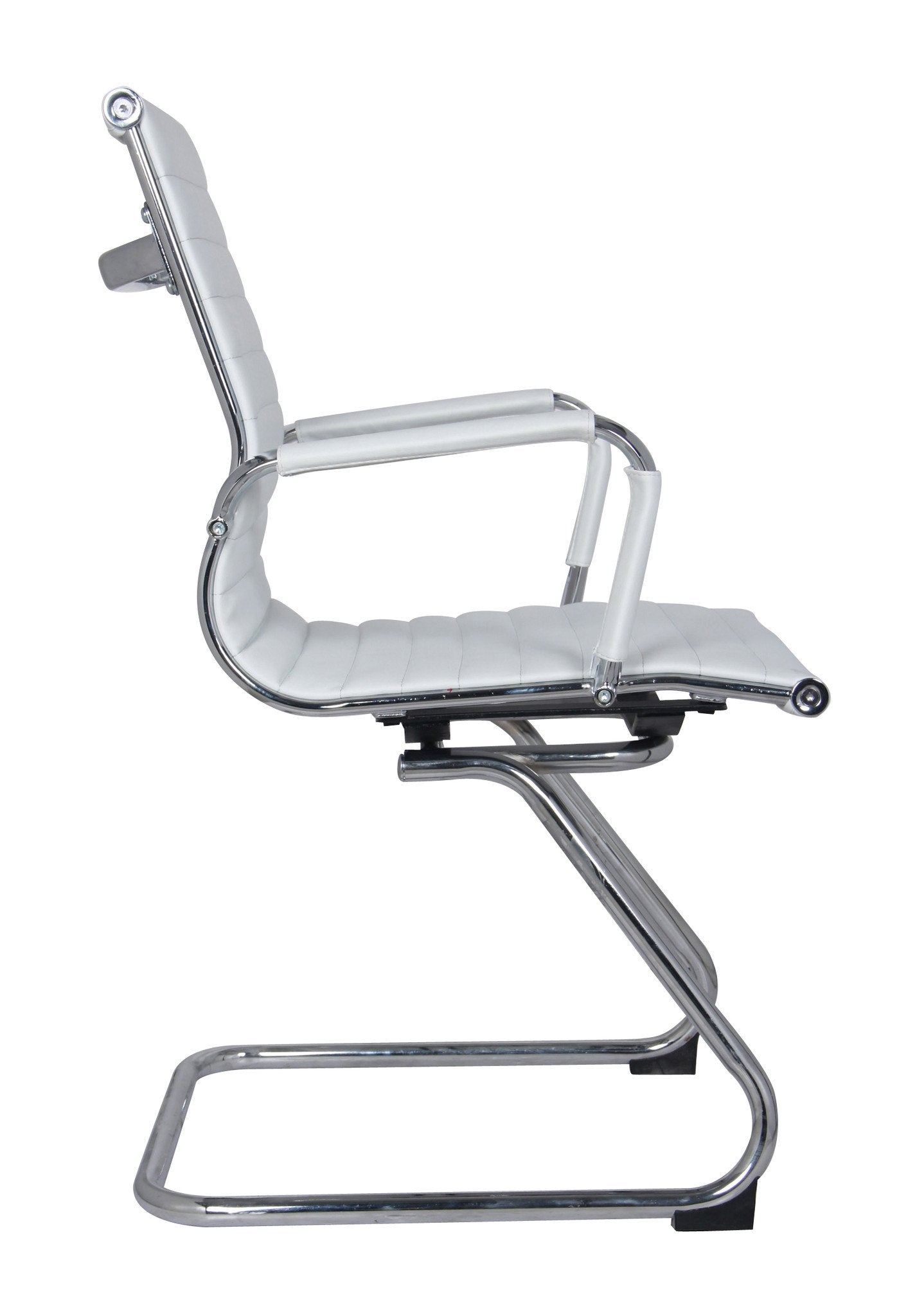 White nylon back and seat Chrome sleigh base/frame Arm frame with padding Maximum weight: 110KG